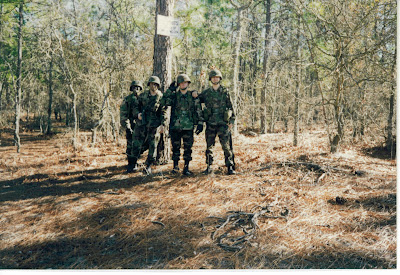 This is me and some friends at Fort Gordon in the Fall of 1995. We were doing land navigation training, which is basically using a compass and a map to try to navigate from point to point. Well, my group had been wandering in the woods on what we thought was the right course, but we came across this sign that said "Off limits by order of the Commanding General". Oops.