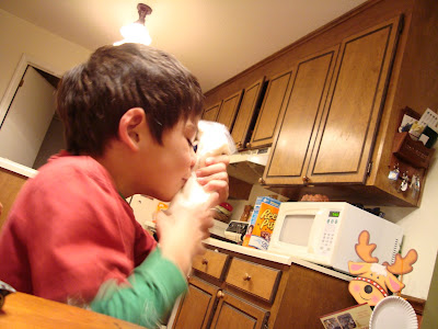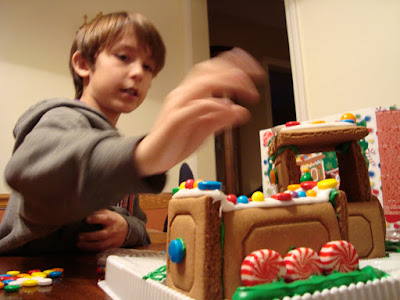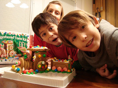 Susan bought the boys a gingerbread train kit, and we built it tonight: