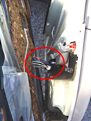 Disconnect the wiring group that controls the windows. They were all running to the same connection on my door. I had to gently force the connection apart.